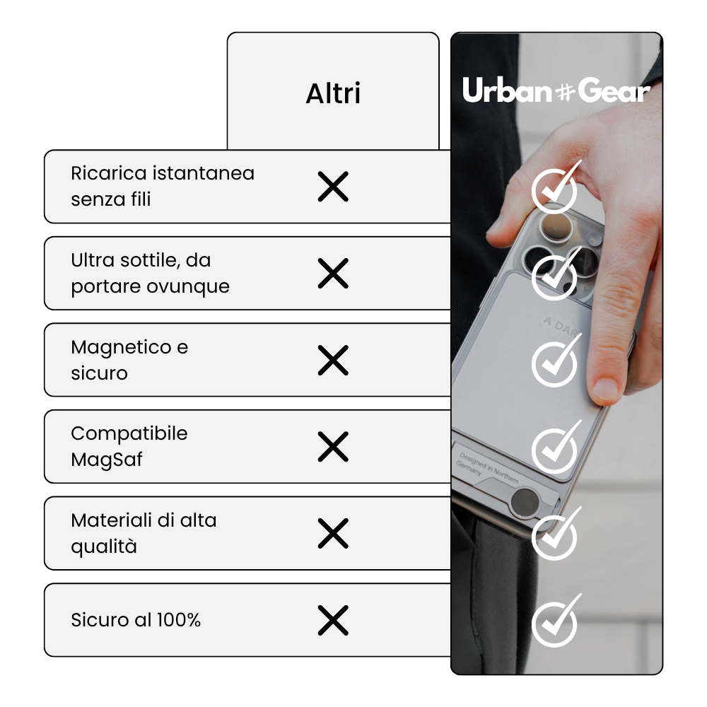 Il nostro power bank è compatibile con tutti i dispositivi con MagSafe, inclusi Apple, Samsung, Google e altri smartphone e accessori compatibili con la ricarica magnetica.